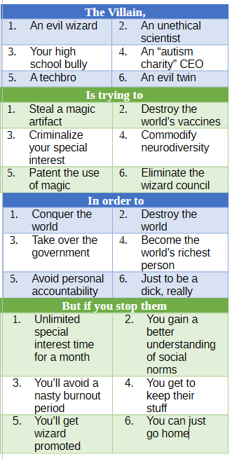 Finally, a new goals table has been created as well with more defined villains and outcomes that should be easier to piece together for newer GMs in particular. Here it is!